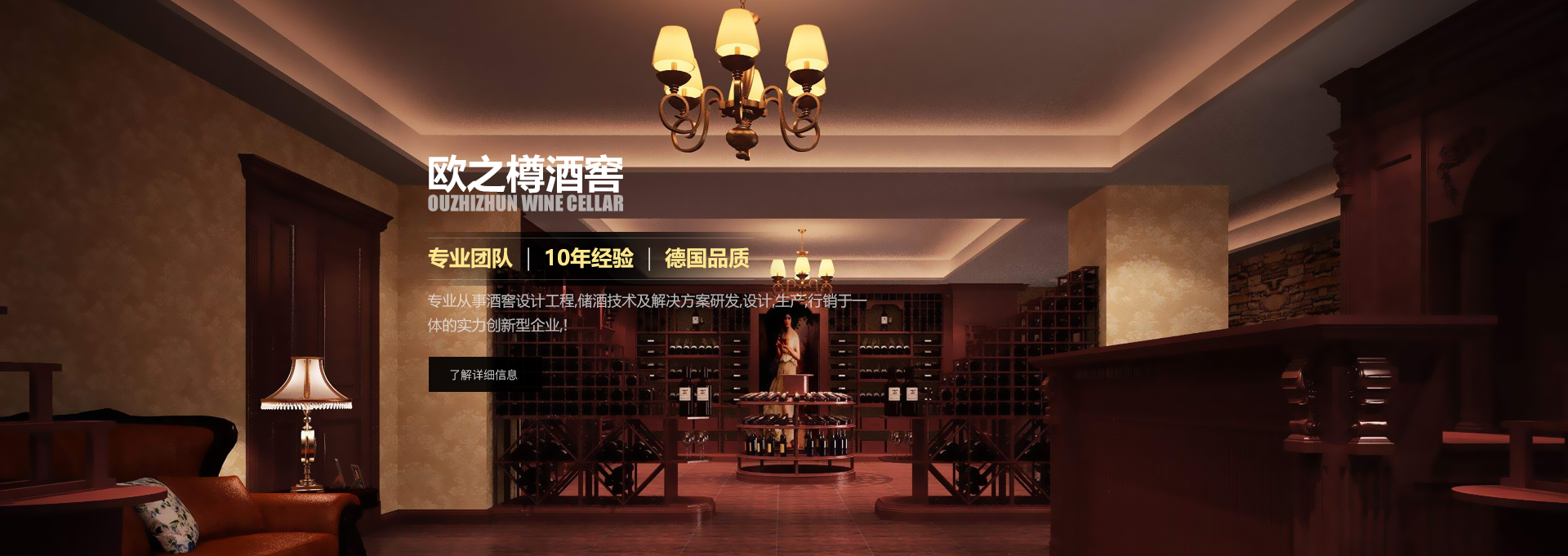 歐之樽酒窖專業(yè)的設計團隊,通過學習歐美成功酒窖的經驗與國內市場相結合,使得我們的設計充滿著歐美氣息的中國風。能讓你在緊張的城市氛圍中找到在大自然 中享受美酒的感覺。歐美進口的全自動控溫控濕系統(tǒng)既穩(wěn)定又方便,